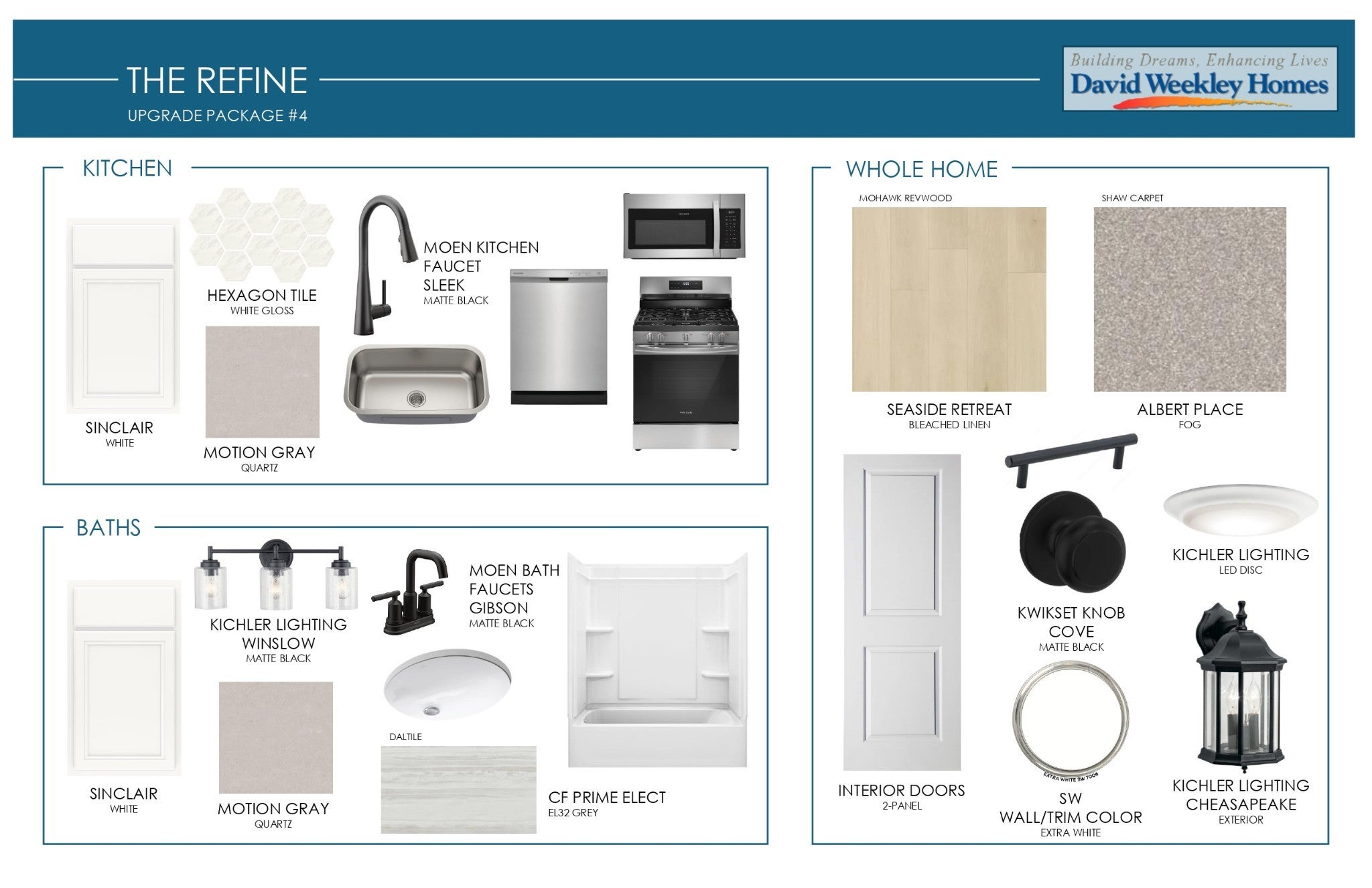 Water Heater, Windows, Low Flow Plumbing Fixtures, Low VOC Paints, Sealed Ducting